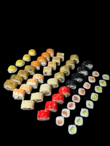 104шт. Роллы: Грин макки, Сяке макки, Текко маки, Каппа макки, Филадельфия, Банзай, Калифорния, Аляска, Цезарь хот, Шеф ролл, Блэк сан, Томаго макки, Нагано || Васаби, соус соевый и имбирь в комплект не входят. Просьба гарниры к роллам заказывать дополнительно