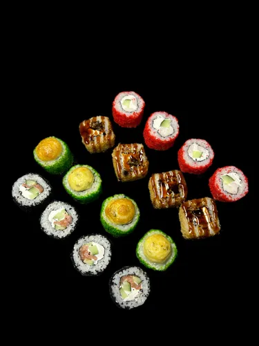 19шт. Роллы: Эби тобико мэджик, Эби макки, Гунканы чиз Кани, Эби, Сяке || Васаби, соус соевый и имбирь в комплект не входят. Просьба гарниры к роллам заказывать дополнительно